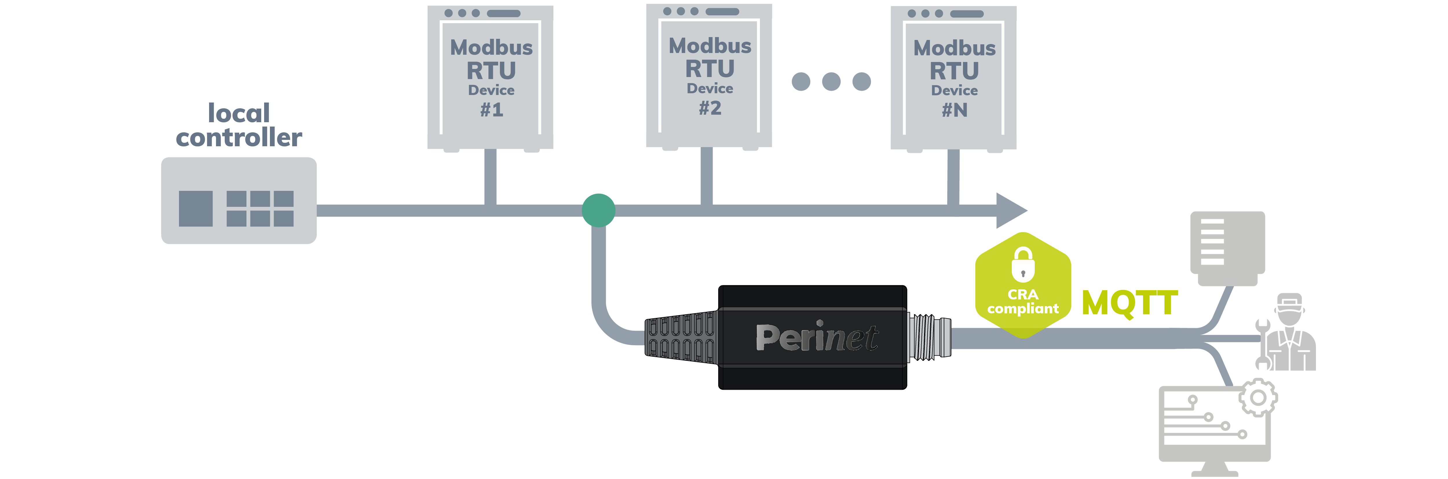 periNODE Modbus enables a variety of IoT and IIoT use cases with secured Modbus TCP communication for Modbus devices with RS-485 Interface